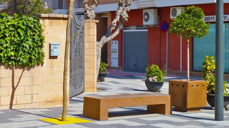 Por último, al banco Laderas® se le unieron después otros elementos como la jardinera y la papelera Laderas.