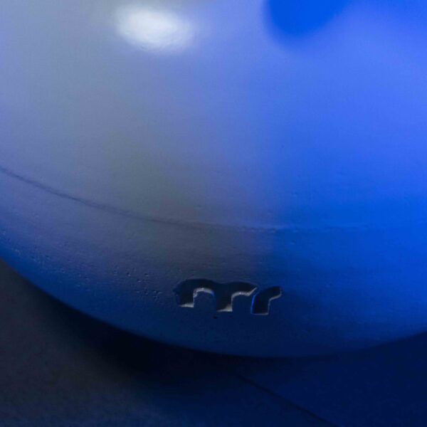 Geométricamente este asiento ovoidal está diseñado a partir de circunferencias tangentes interiores que crean una doble curvatura y otorgan a la pieza su característico aspecto de canto rodado o piedra de río.