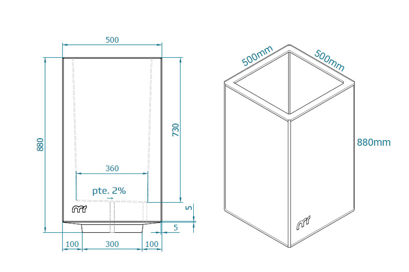 Nuestras papeleras cuentan con varias opciones de acabados, tanto hormigón visto como liso anti-grafiti. Además, se les aplica un tratamiento hidrofugado.