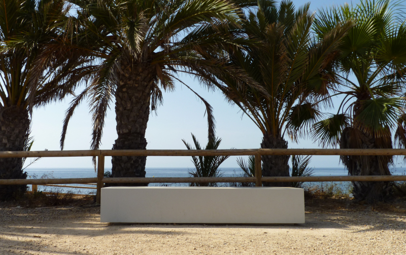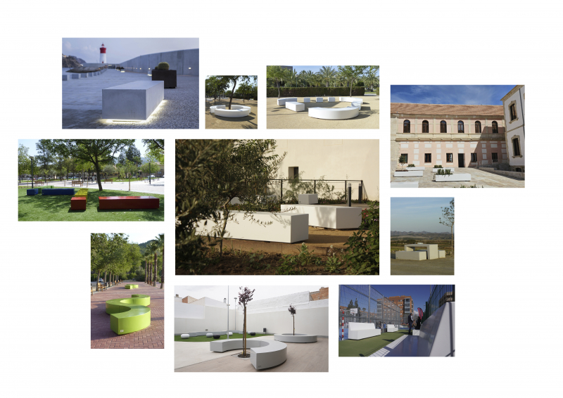 - Banco semicircular Taray: Perfecto para crear áreas de descanso alrededor de fuentes o árboles.