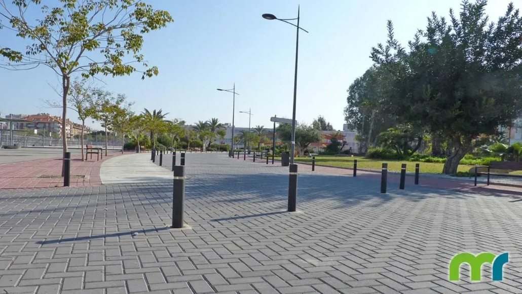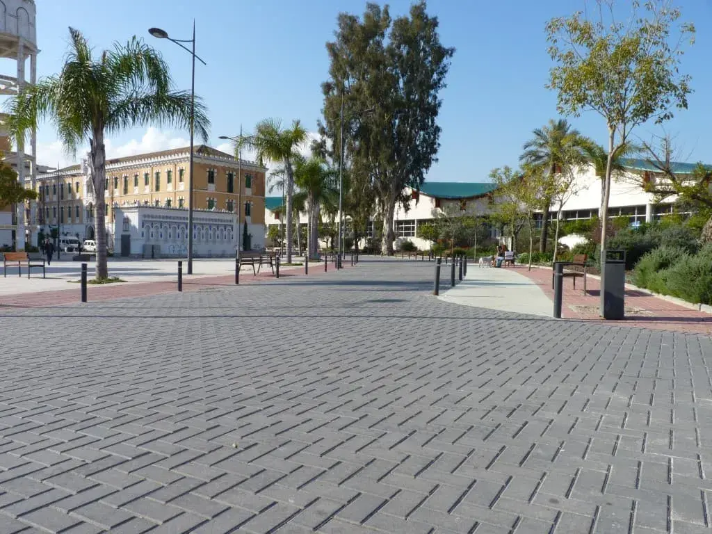 Róterdam® es una pieza de adoquín de gran espesor, que puede utilizarse en espacios que han de soportar grandes pesos, como puertos de carga o hangares.