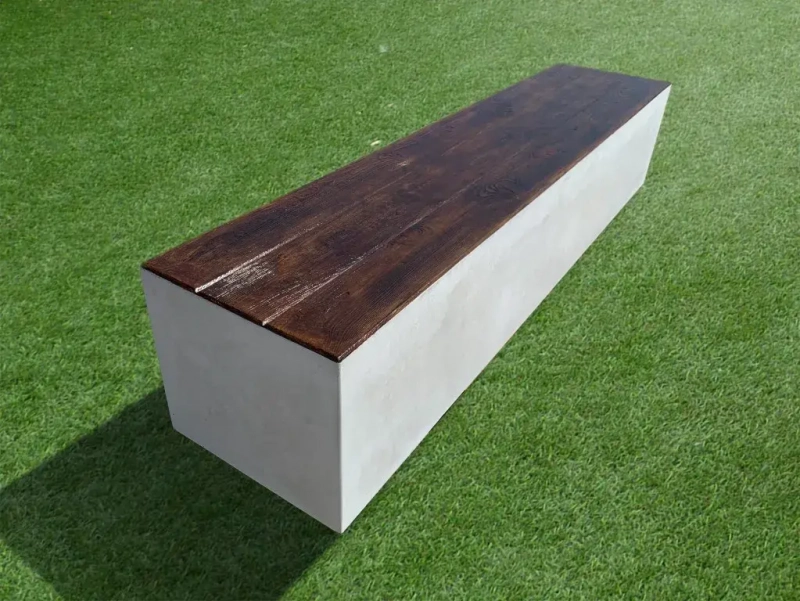 El banco Ibérico® incorpora un trampantojo de madera a la superficie del asiento.