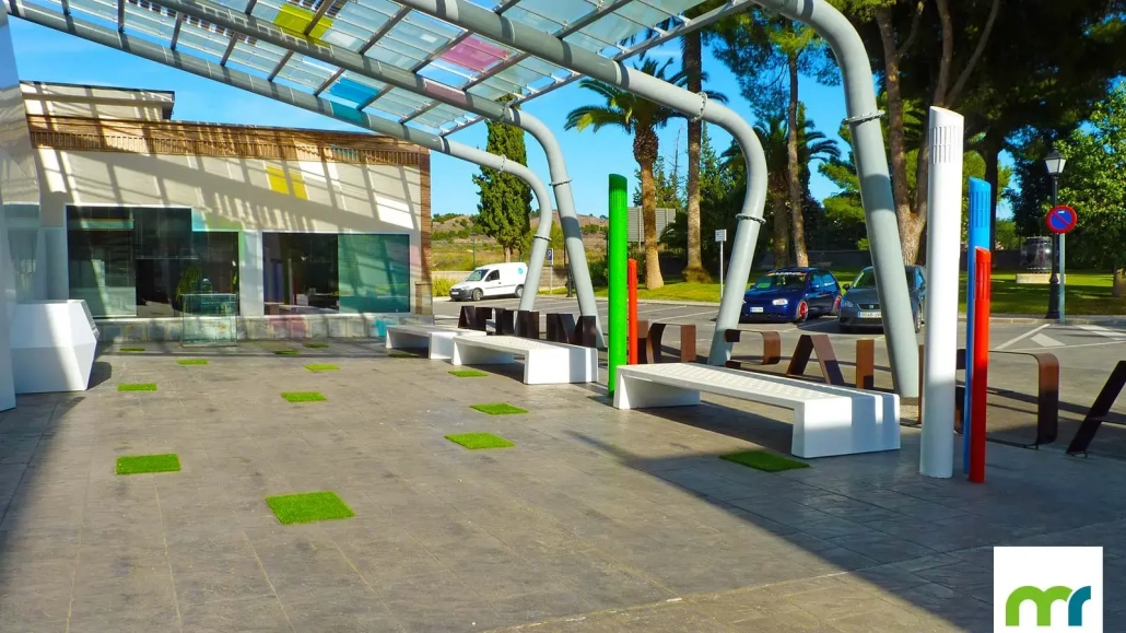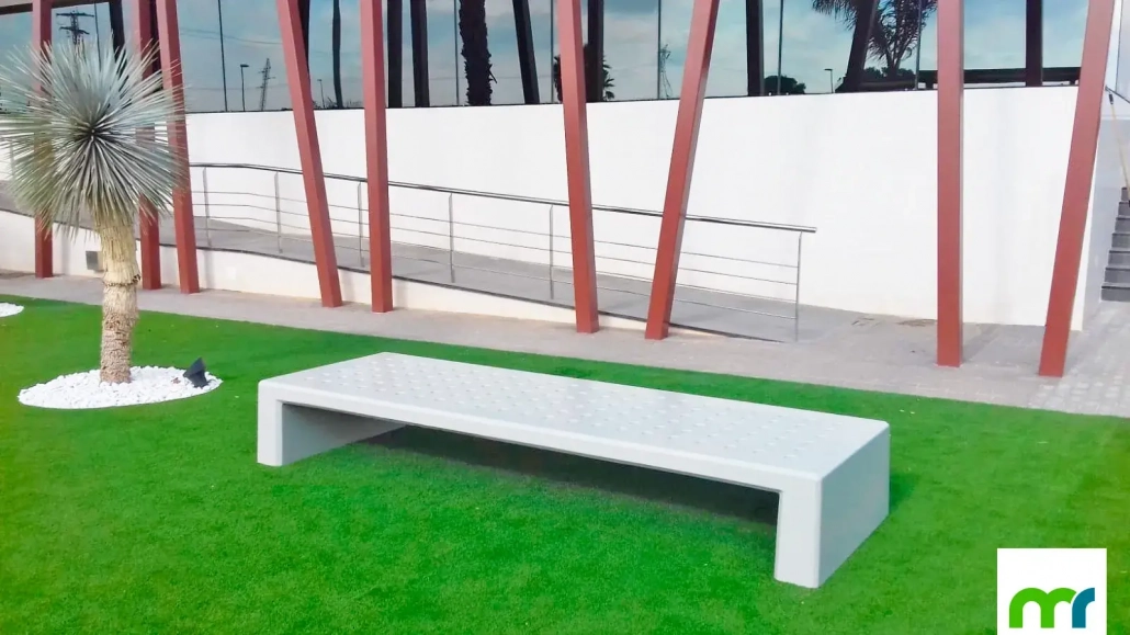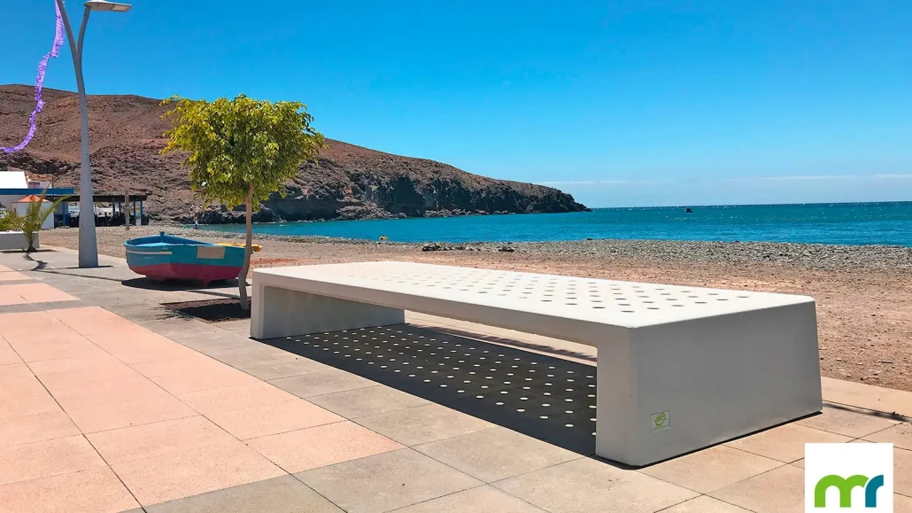 El banco Laderas® es una pieza de alto valor paisajístico y estructura porticada que potencia la horizontal como forma de dialogar con el paisaje.