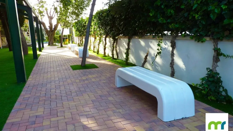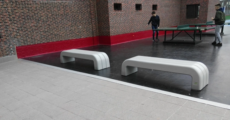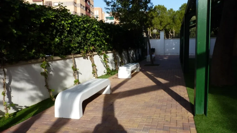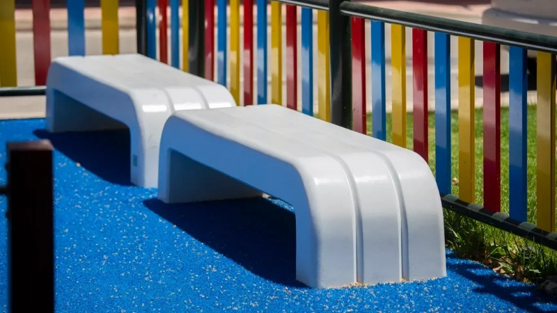 Su ergonomía y la ausencia de cantos vivos lo hace especialmente indicado para espacios donde el criterio de seguridad es importante: como zonas de juego infantiles o de entrenamiento deportivo para adultos.