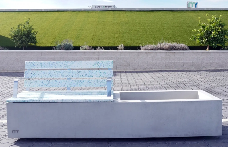 El Ecogreen® Mixto (mitad jardinera) tiene el asiento y respaldo fabricado con listones de plástico reciclado procedentes de residuos urbanos post-consumo no gestionados por el actual Sistema Integrado.