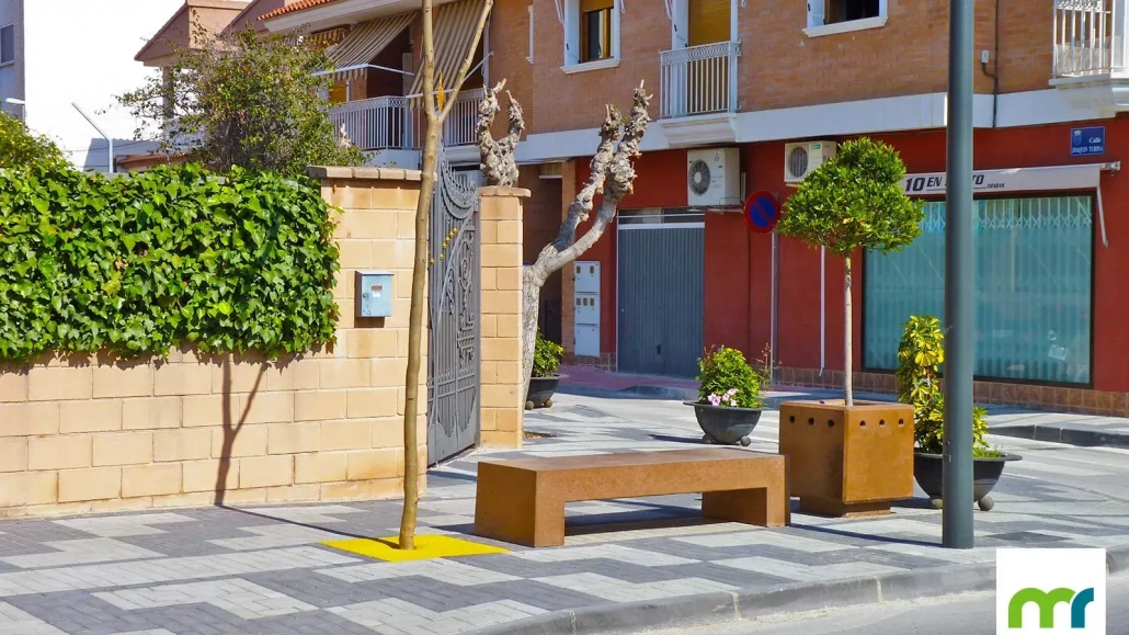 La jardinera Laderas® es una pieza compacta, sobria y resistente, y fue desarrollada en paralelo con el diseño de banco Laderas®.