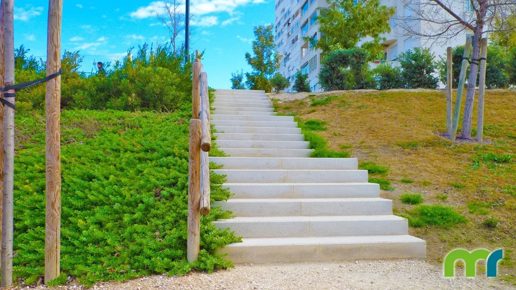 Con sus piezas pueden componerse zonas de descanso y caminos en espacios ajardinados, playas, zonas forestales y parques naturales.