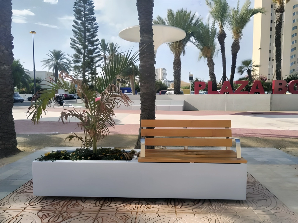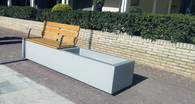 El Lumber® Mixto con respaldo es una pieza de mobiliario urbano de corte elegante que tiene el asiento y el respaldo de madera qaue permite un acabado natural y cómodo para sentarse.