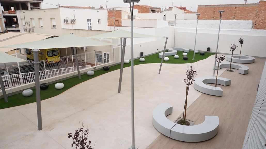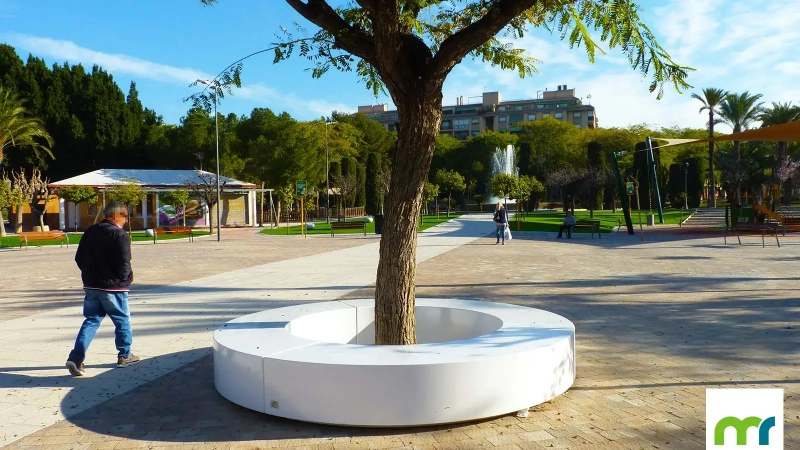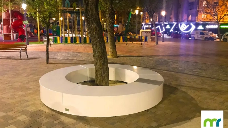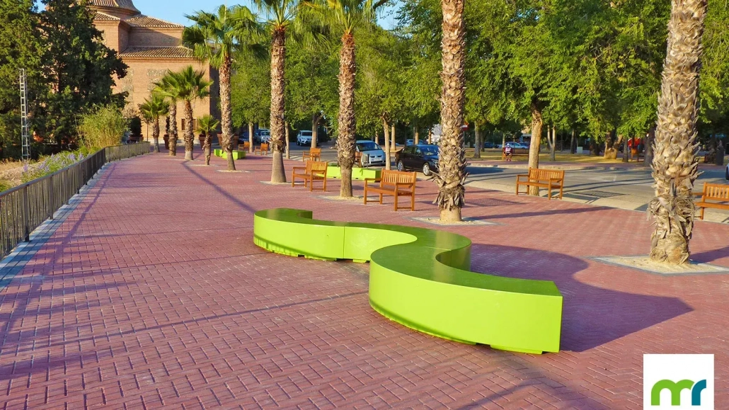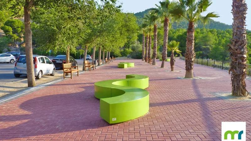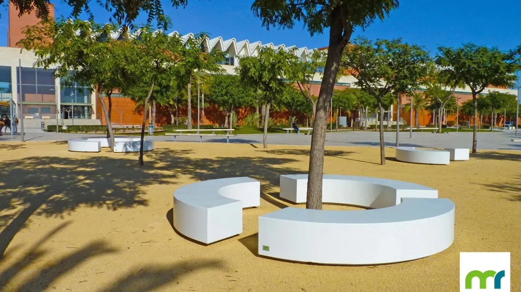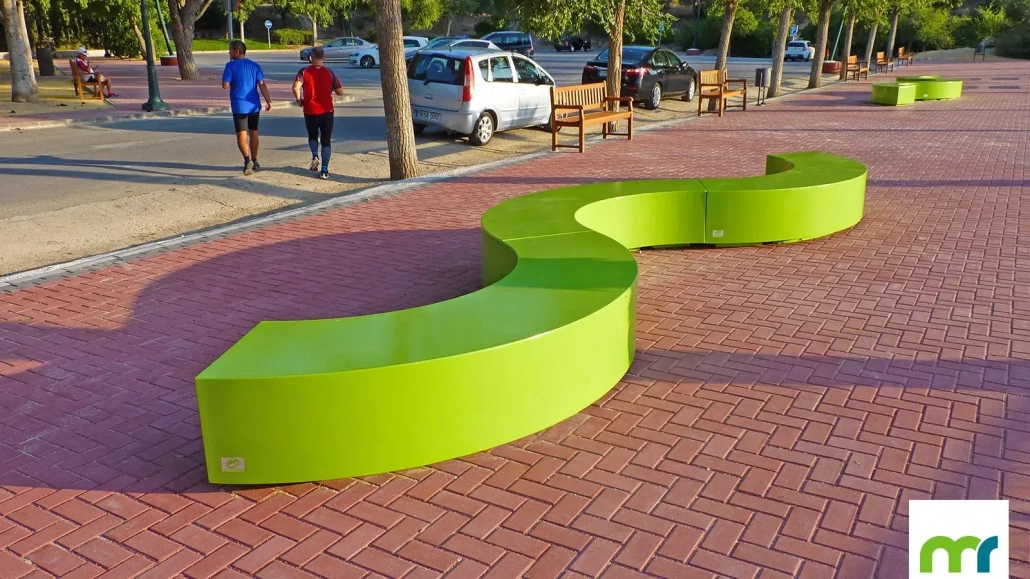 El banco Taray® Semicircular permite crear curvas y líneas sinusoidales en el paisaje, dando lugar a delimitaciones del espacio realmente singulares.
