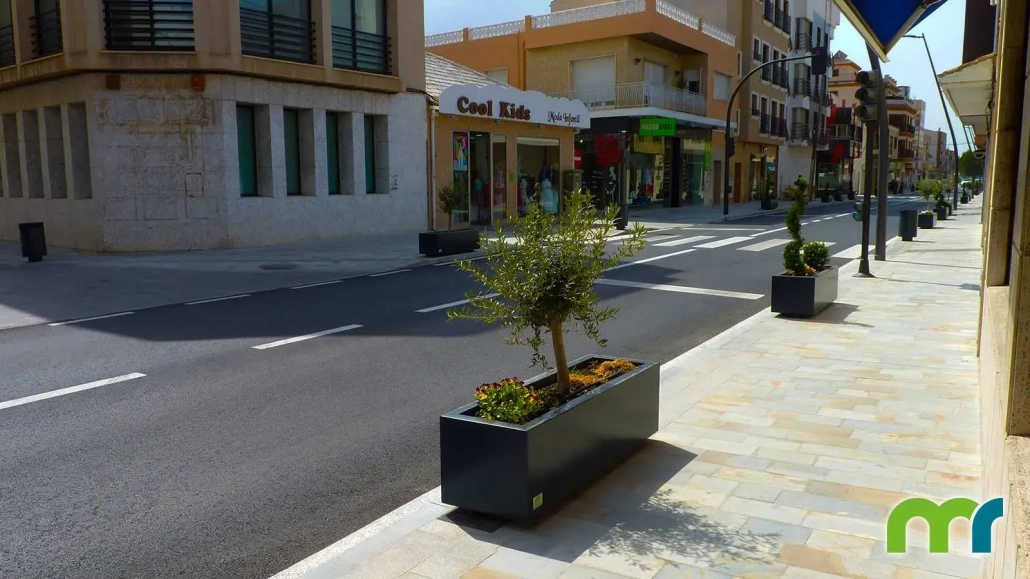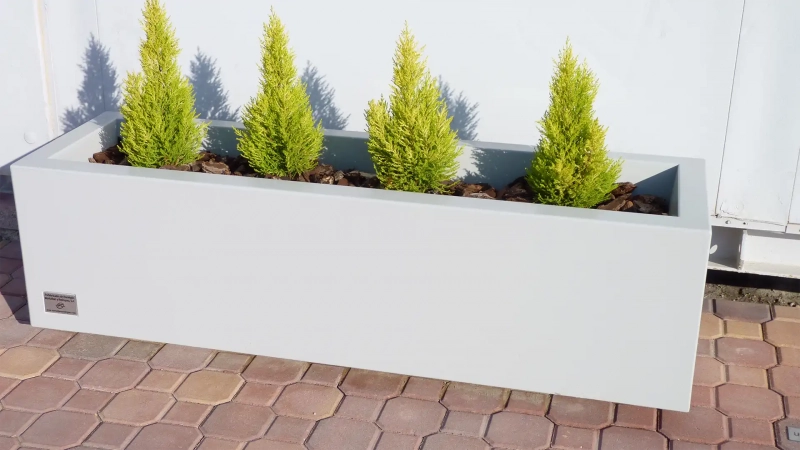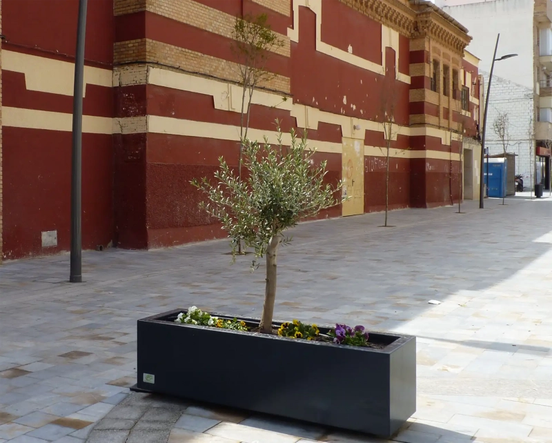 Primavera® es una jardinera rectangular de 1,5 metros de longitud máxima y 45 cm de altura. Por sus dimensiones ofrece gran versatilidad y es ideal para espacios de pequeña y mediana escala.